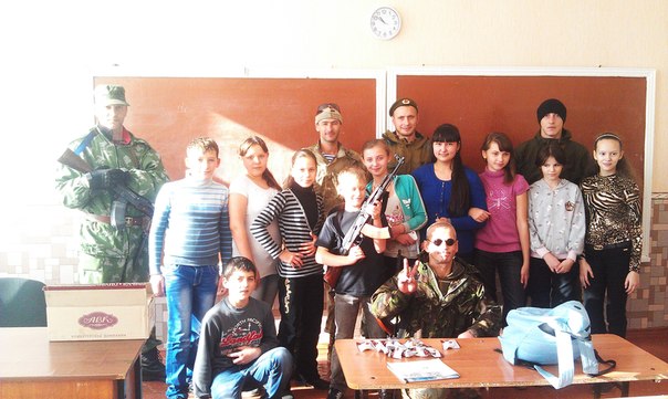 Вот например, военный разведчик из Москвы вместе с подразделением «Рязань»заехали в школу в Старобешево и привезли детишкам конфеты.