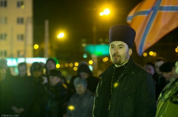 Имя отца Владимира стало известно на всю страну после того, как 11 марта 40-летний священник пришел на проводы отряда уральских добровольцев на Донбасс. "Вы едете туда, где решается судьба России. Молюсь, чтобы Господь укрепил ваши сердца. Чтобы вы били фашистскую мразь, если это потребуется", — произнес он и вручил отряду флаг "Новороссии", который прошлым летом уральские православные монархисты пронесли крестным ходом от Храма-на-Крови до монастыря на Ганиной Яме в поддержку "борющегося народа Новороссии".
