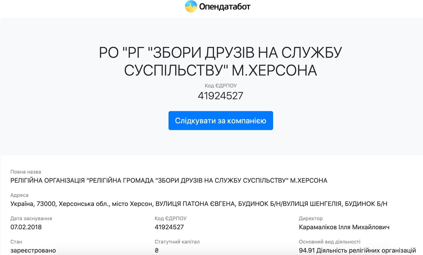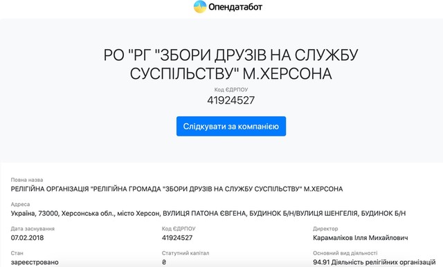 А Карамаликов додумался, и в феврале 2018 году он зарегистрировал религиозную организацию «Религиозная громада «Собрание друзей на службу обществу» г. Херсона.
