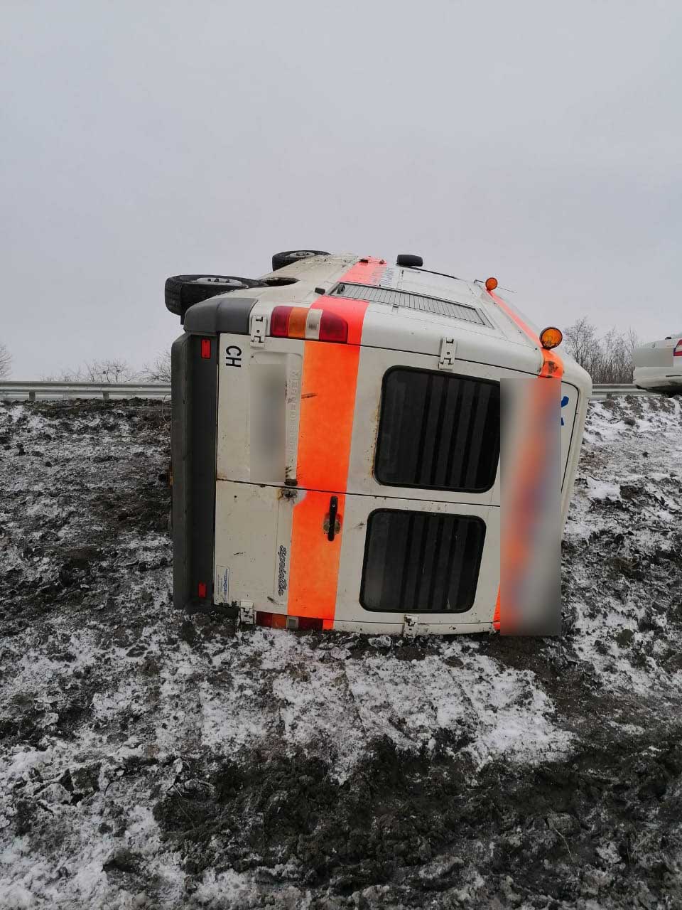 По словам водителя “скорой”, во время обгона у него лопнуло колесо. Грузовик съехал на обочину, а “скорая” превернулась набок. В салоне находились две женщины и малолетний ребёнок. Примечательно, что до этого они попали в другое ДТП, после которого водитель вёз их в роменскую больницу.