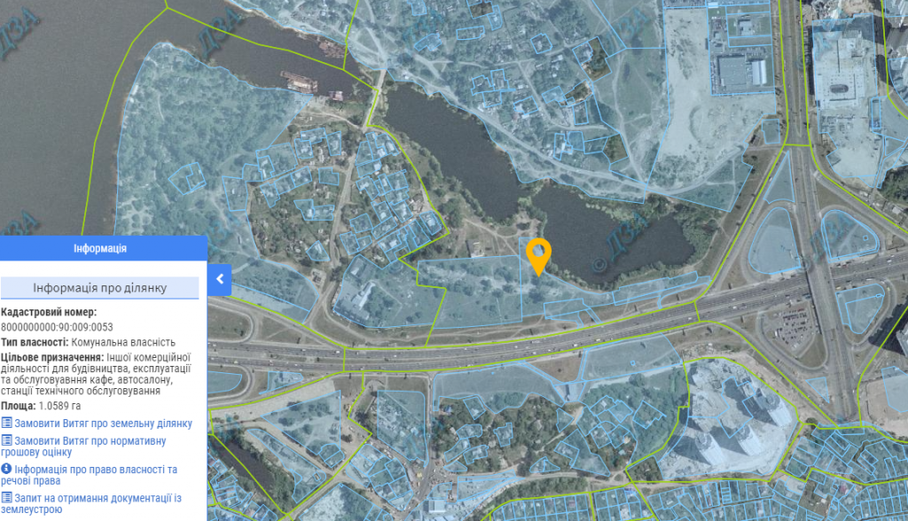В ГУО говорится, что земельный участок с номером 8000000000:90:009:0005 попадает в зону охранного ландшафта (согласно распоряжению КГГА от 25.12.2007 №1714), в прибрежную защитную полосу и в зону особого контроля (полосы воздушных подходов). Также в ГУО указано, что речь идет о земле рекреационного назначения, функциональное назначение земельного участка – территория зеленых насаждений общего пользования, в соответствии с Детальным планом территории (ДПТ) 11 микрорайона Позняки-Западные (утвержден решением Киевсовета от 15.11.2007 года №1218/4051).