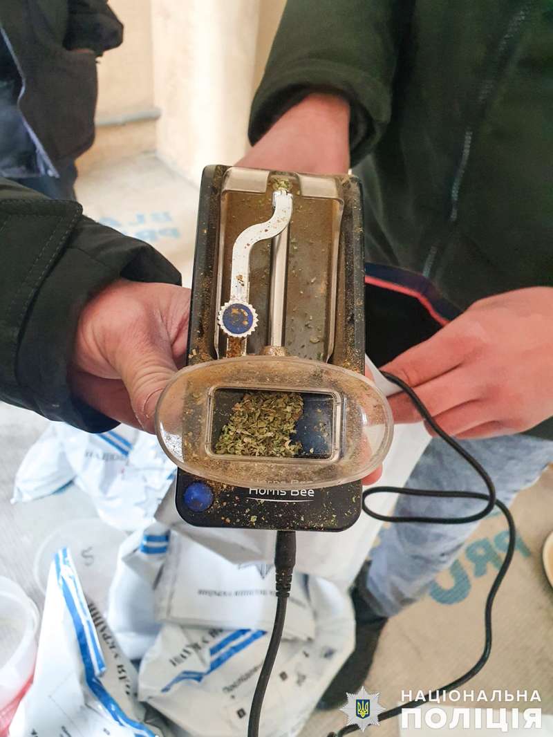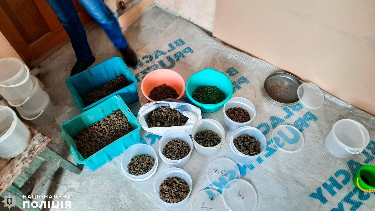 Во время обыска в доме полицейские нашли наркотические вещества, которые хранились в пластиковых ведрах, пакетах и других емкостях, а также электрический дробильный прибор для измельчения наркорастений.