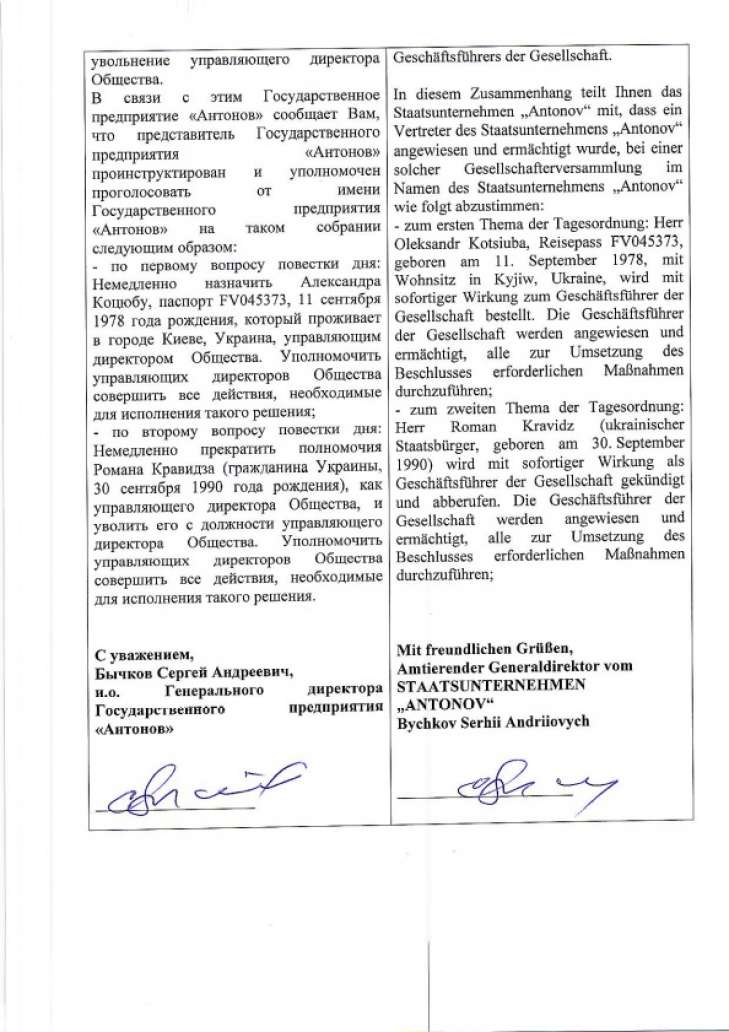 Неужели Бычков не понимал, кто эти лица и чем это чревато в случае провала всей операции по внедрению Коцюбы на должность второго директора немецкой компании Antonov Logistic Salis? Конечно, понимал и заведомо знал, что подписывает – ведь насоветовали «радныки» и юристы - доверенные лица Сергея Андреевича…