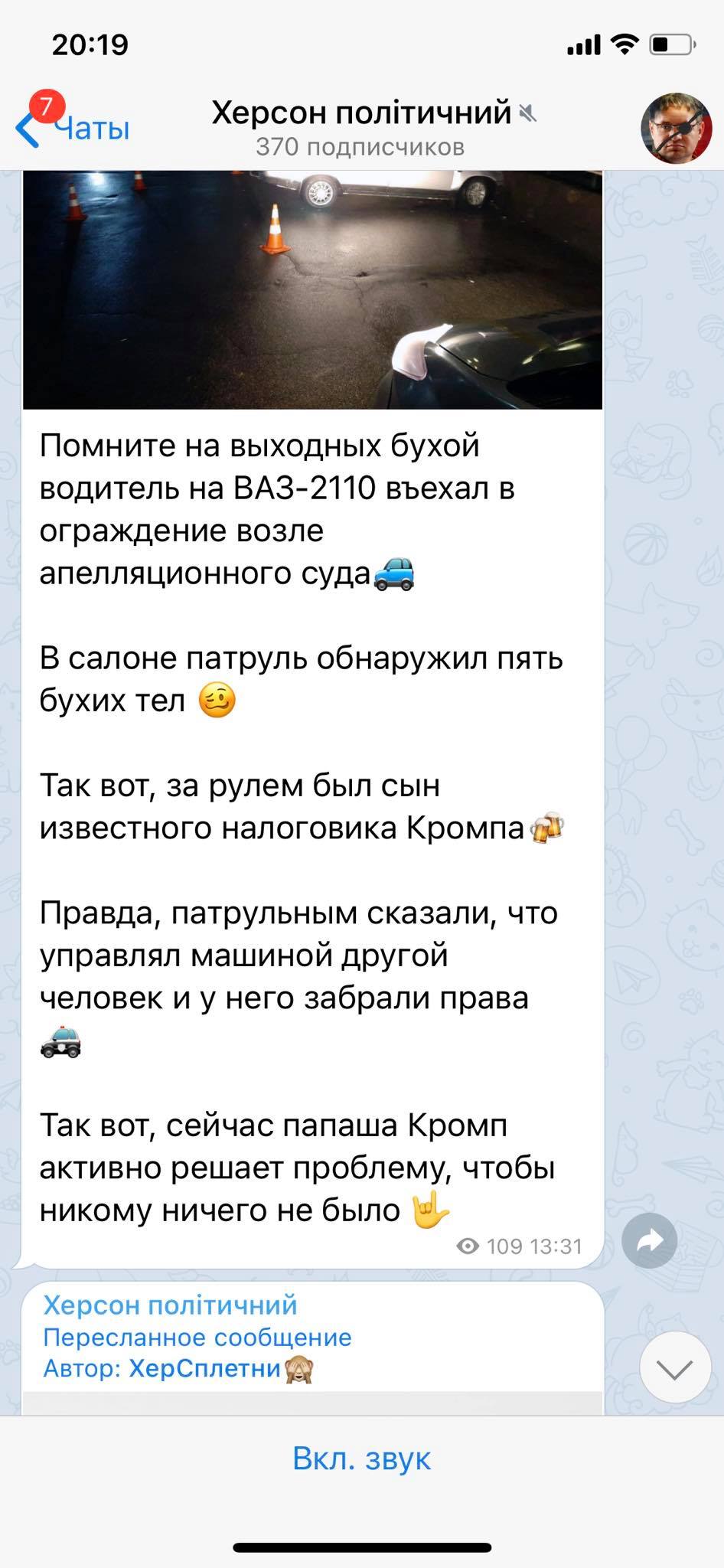 Золотая молодежь недавно прославилась на Херсонщине. Один из местных телеграмм-каналов сообщает, что громкая недавняя авария с пьяными молодыми людьми, которые врезались в забор Апелляционного суда, может быстро замьятися.