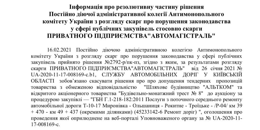 Теги: Всеукраїнський дорожній консорціумГриненко АртемАвтомобільні дороги УкраїниТендериДорогиБудівництвокорупціонериТОВ Антікартель Експерт ГрупЗагребельская АгияМельниченко ЕвгенийАраик АмирханянАМКУАвтомагістральСкоростецкий НиколайКорупція