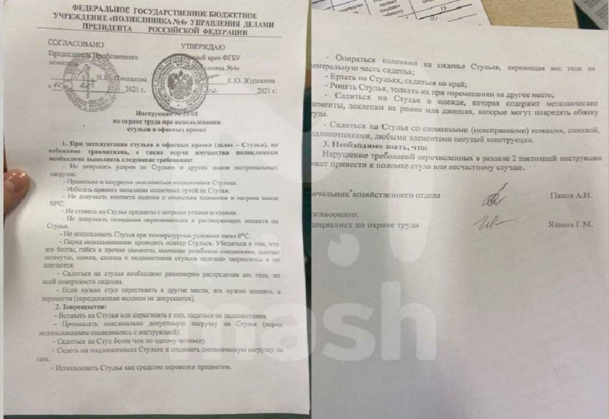 В Москве врачам федеральной поликлиники №4 запретили ерзать на стульях и рассказали, как правильно на них садится. Об этом пишет Telegram-канал Mash.
