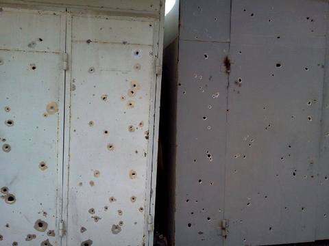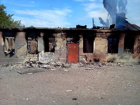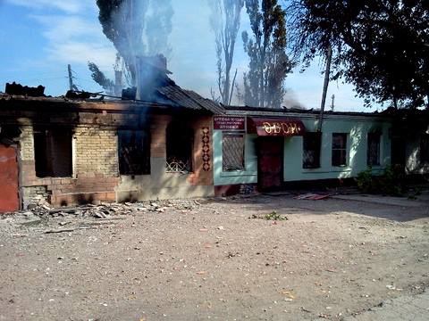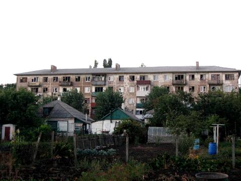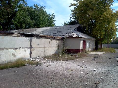 Перекусить остановились в Славянске. Печальная картина. Справа разбиты дома, слева посеченные производственные строения.