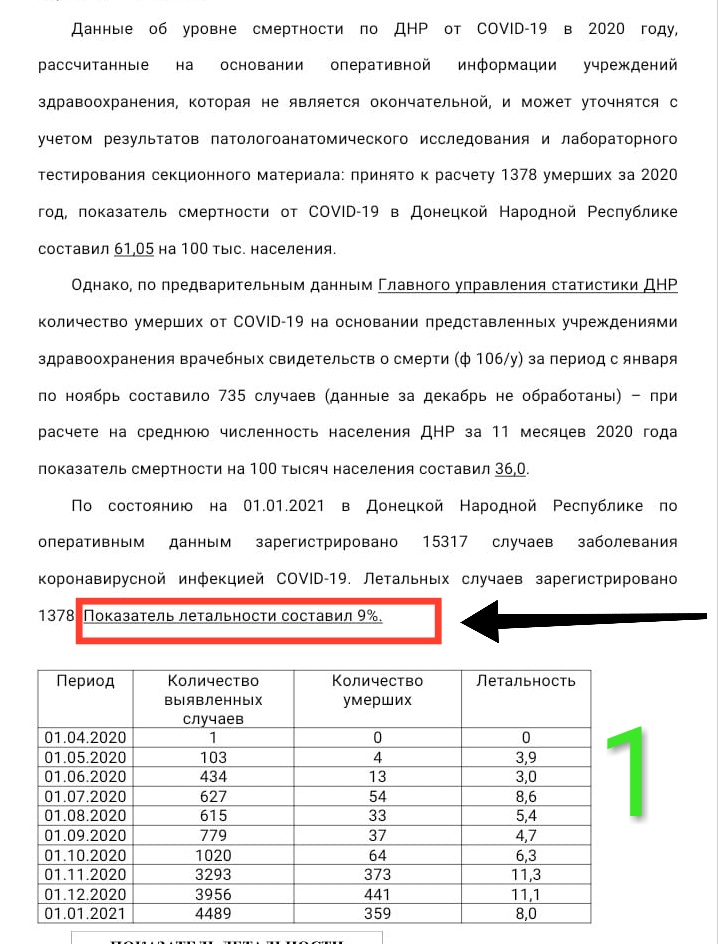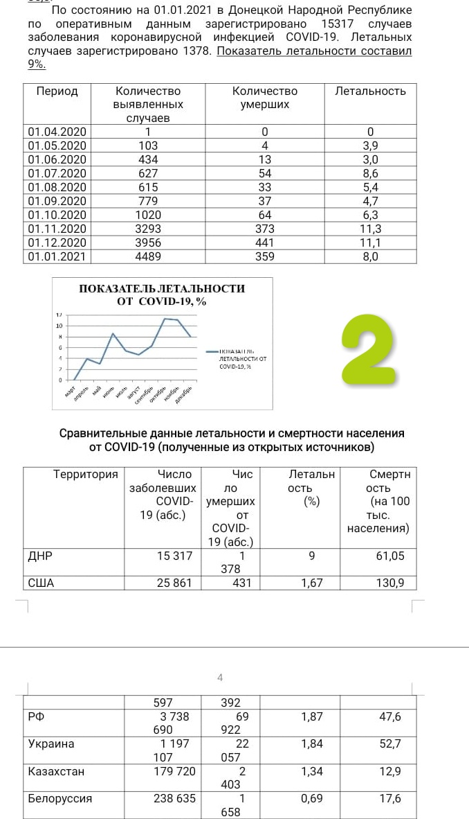 Итак, читаем вместе вслух: за 2020-й год только "официально" умерли 1378 человек. По состоянию на 1.01.2021 года "официальные" цифры по заболевшим - 15317 человек. Реальные цифры же можете смело умножать на три. Ну или на 4. А Донецке часто списывают смерть от ковида на другую, это и является истинной причиной таких маленьких показателей.