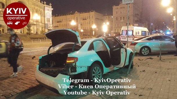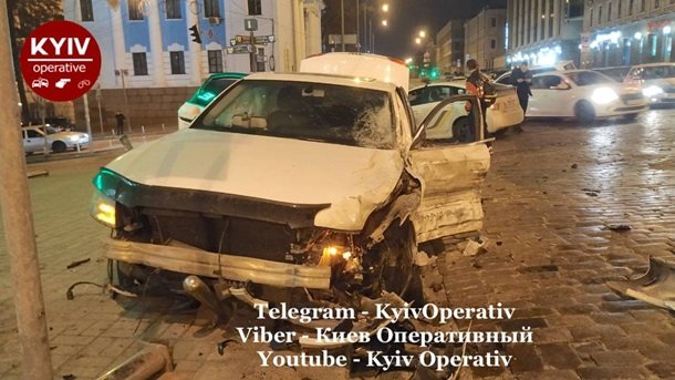 В центре Киева водитель одним движением руля отправил на свалку две иномарки