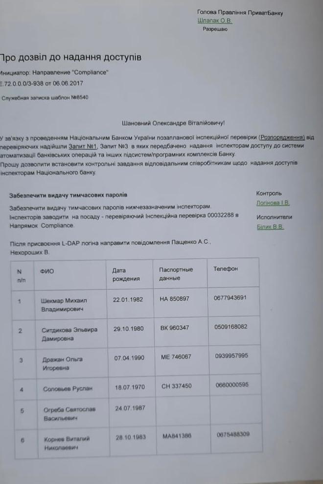 Как сообщил источник в правлении Приват Банка представители компании Kroll на протяжении 2017 года действительно проводили расследования в банке, компанию представляли сотрудники из офиса в Москве, граждане России. Им был предоставлен неограниченный доступ к информации, выделены рабочие места, основная их функция был сбор различных данных и их перемещение в Московский офис для анализа. На вопрос могли ли сотрудники получить данные о чиновниках в Украине, военнослужащих, предприятий оборонной промышленности источник ответил, что это возможно, так как контроля за предоставление данных со стороны банка не было. В распоряжение редакции также попали документы за подписью Рожковой, где она обязала предоставить доступу гражданам России, сотрудникам компании Kroll.