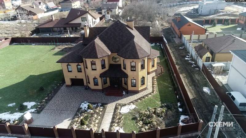 Попри те, що суддя вже давно на державній службі, у 2019-му змогла обзавестись великим будинком під Києвом. Так, на своїй же земельній ділянці у Новосілках вона побудувала помешкання площею 298 кв. м і 60 кв. м господарських споруд. Із карт можна зробити висновок, що почали будувати у 2014 році, а у 2015 будинок вже був «під дахом», однак власність зареєстрували лише у 2019. Поряд – приватизована дочкою частина землі державного дослідного господарства. Ось такий вигляд будинок має зверху.