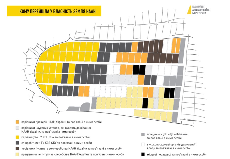 За даними слідства, упродовж 2013–2014 років посадовці НААН ініціювали ухвалення низки рішень, внаслідок яких понад 15 га державних земель незаконно перейшли в приватну власність. Йдеться про 138 ділянок у передмісті Києва (село Гатне), які мали статус особливо цінної землі й повинні були використовуватися винятково з дослідницькою метою.