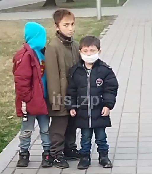 На опубликованных кадрах запечатлены трое мальчиков. Рядом стоят полицейский и вызванный на место происшествия родственник.