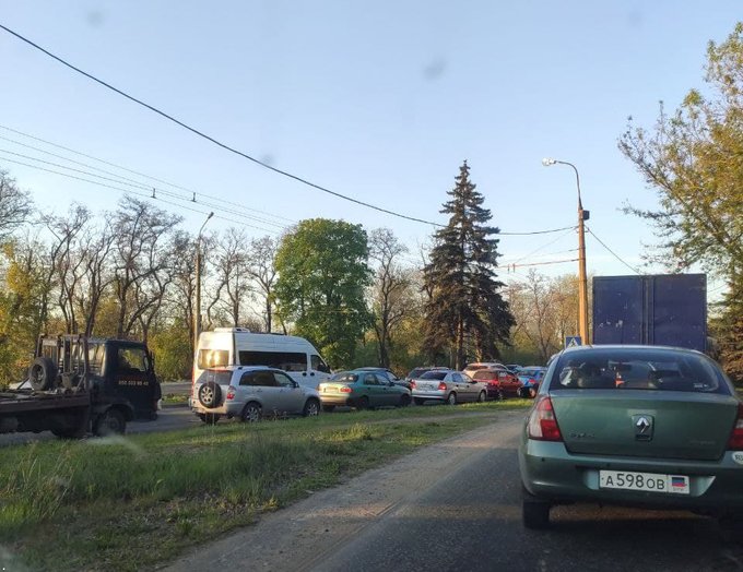 По их данным, пробка протянулась от Ботанического сада до Чайкинского кольца. Там стоят члены незаконных вооруженных формирований и массово проверяют у водителей документы.