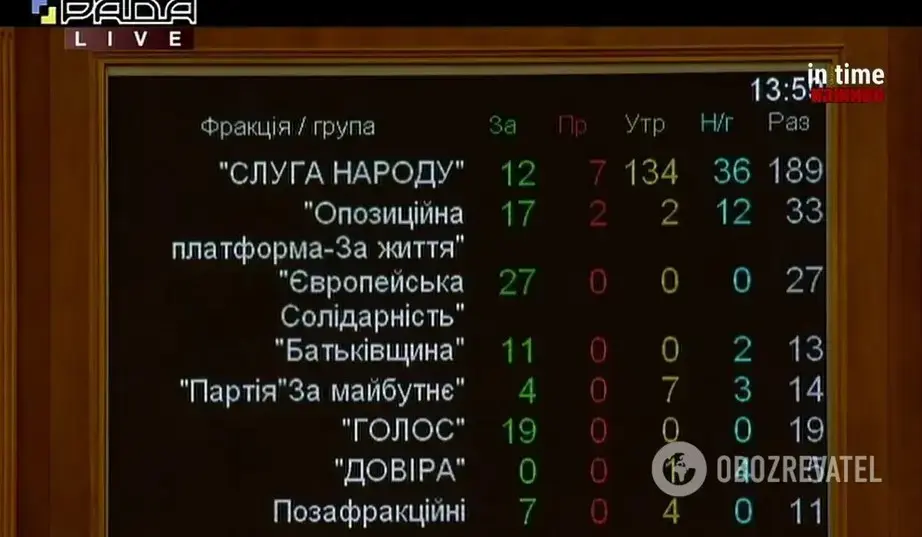 Нардепы рассмотрели постановление о создании комиссии, однако проголосовали за него в конечном итоге только 97 народных избранников. В основном за создание комиссии проголосовали депутаты из фракций «Европейской солидарности», «Батькивщины» и «Голоса». Большинство «слуг народа» воздержались от голосования.