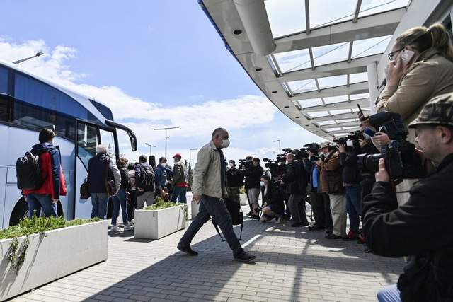 Работники российского посольства в Праге прибыли в аэропорт автобусом, в котором находились взрослые и дети. Известно, что первым спецрейсом выехали 54 дипломата.