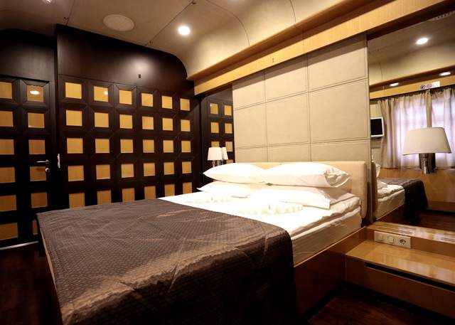 Всего в таких "гостиницах на колесах" есть от 5 до 11 спальных мест, а также места для совещаний. Для охраны и служебного персонала предусмотрены специальные купе.