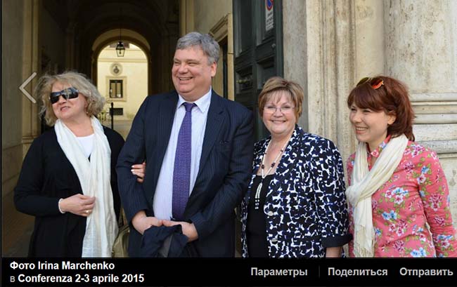 В частности, 2-3 апреля в Риме в Российском центре науки и культуры проходила IX Конференция ассоциаций российских соотечественников Италии, в которой также принимали участие и представители ассоциации «Русское поле» Корнилкова и Марченко. Т.е., эта организация имеет непосредственную связь с итальянским представительством «Россотрудничества», которое, видимо, благословляет соотечественниц на неистовую любовь к «Новороссии» и ненависть к Украине.