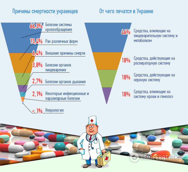 Об этом и о многом другом – в цикле расследований "Обозревателя". В первой статье цикла мы расскажем о том, почему в Украине больше всего продается лекарств, абсолютно не связанных с болезнями-лидерами среди причин смертности.