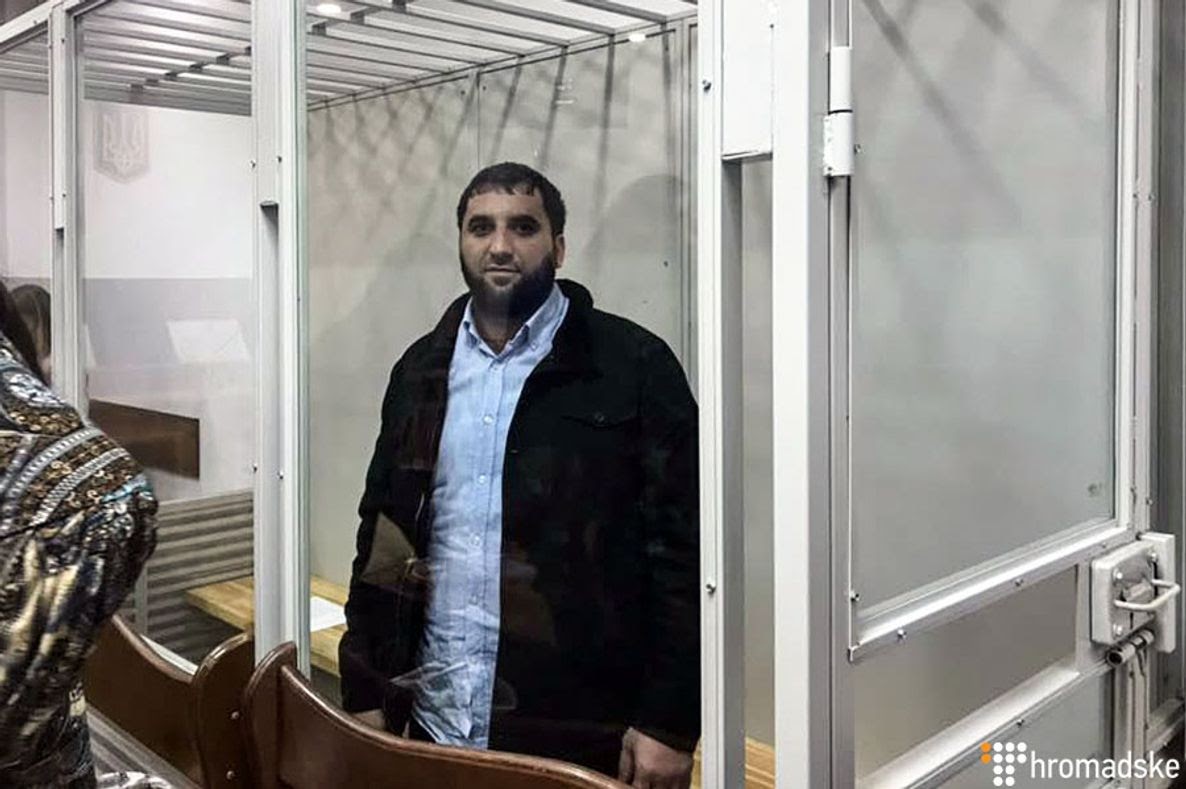 Салман Сайнароев на скамье подсудимых во время заседания Шевченковского райсуда Киева, 22 октября 2018 года. Фото: hromadske