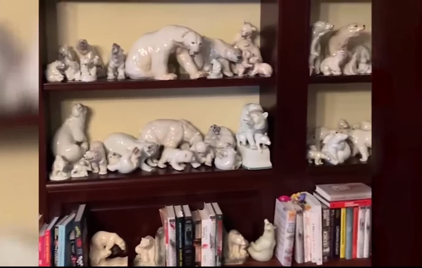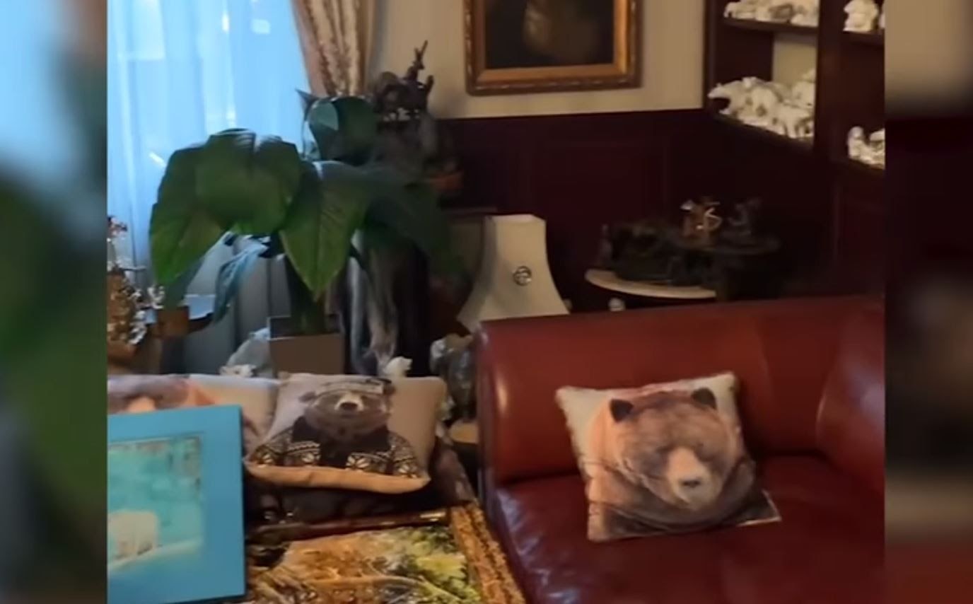 Место, где жил Сергей Олейник «Умка». Повсюду — фигурки и изображения медведей, похожих на героя мультфильма про медведя Умку. Фото: кадр из видео Департамента стратегических расследований