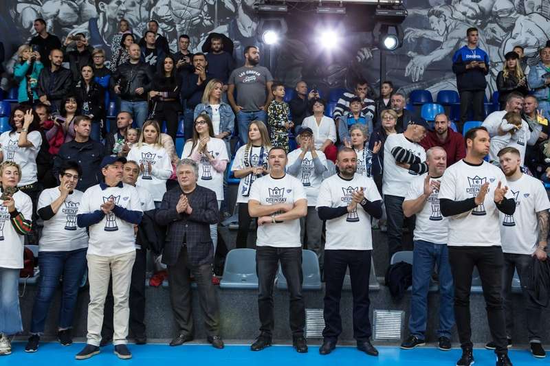 Игорь Коломойский, Валерий Кондратьев Сергей Олейник и Александр Петровский на матче баскетбольного клуба «Днепр». Фото: пресс-служба БК «Днепр»