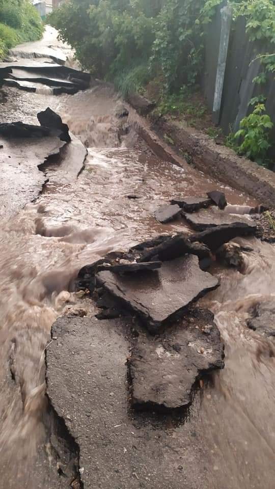 Непогода, разгулявшаяся в Украине, «отметилась» и в Харьковской области, разрушив дорожное покрытие в городе Изюм.