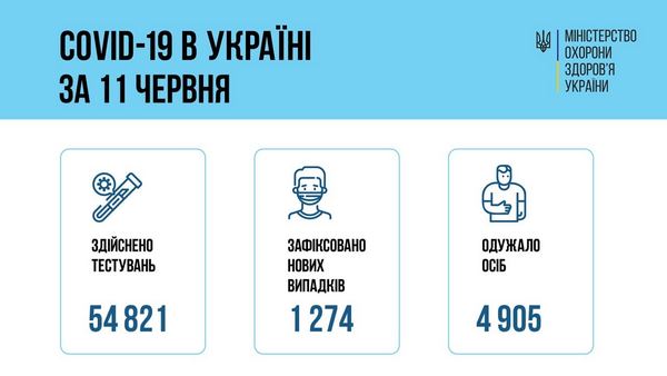 За минувшие сутки в Украине зафиксировано 1274 новых случаев заболевания COVID-19.