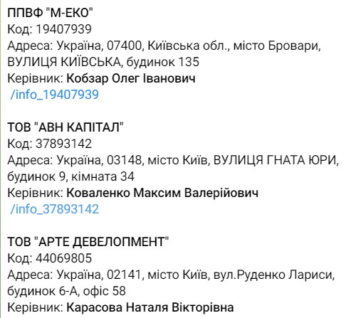 6. ТОВ "АВН КАПІТАЛ" – статусный капитал почти 800 тысяч гривен. Конечный бенефициар – тот же.