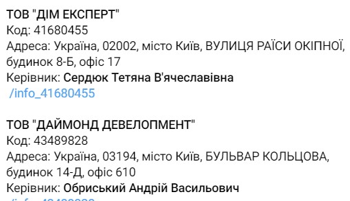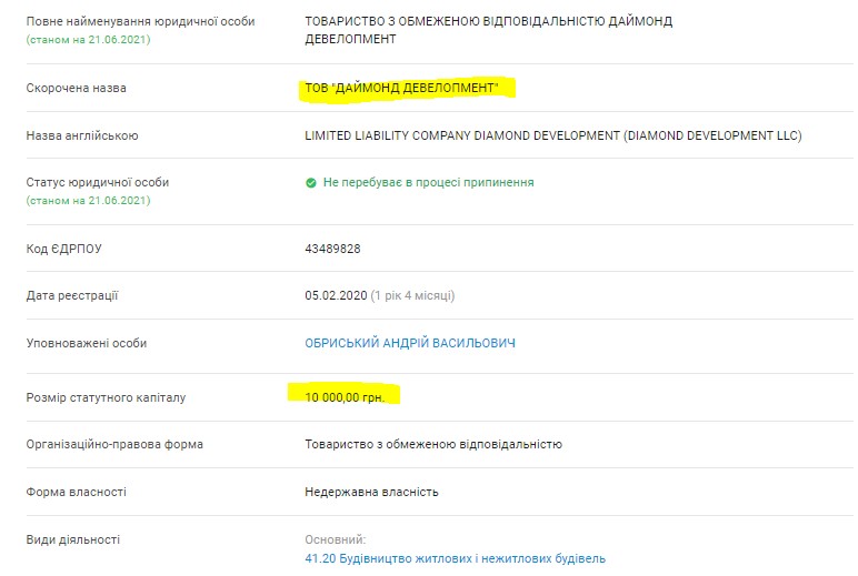 16. ТОВ "ДАЙМОНД ДЕВЕЛОПМЕНТ" – 10 тысяч статусного фонда. Основной бенецифиар – Александр Насиковский.