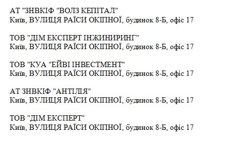 Сразу отметим, что 5 компаний зарегистрированы по одному и тому же адресу…