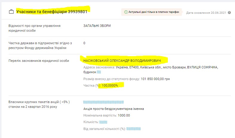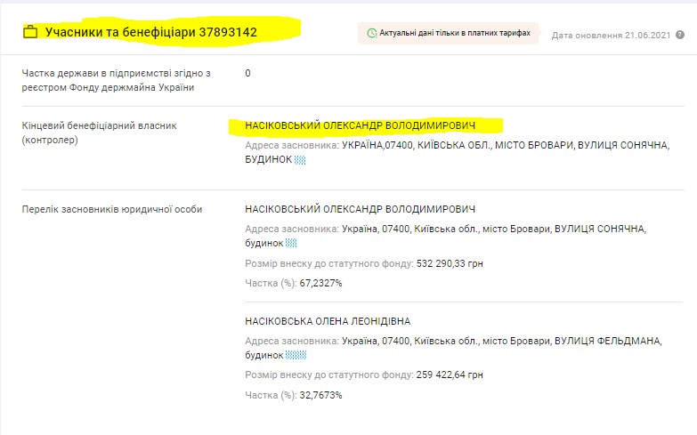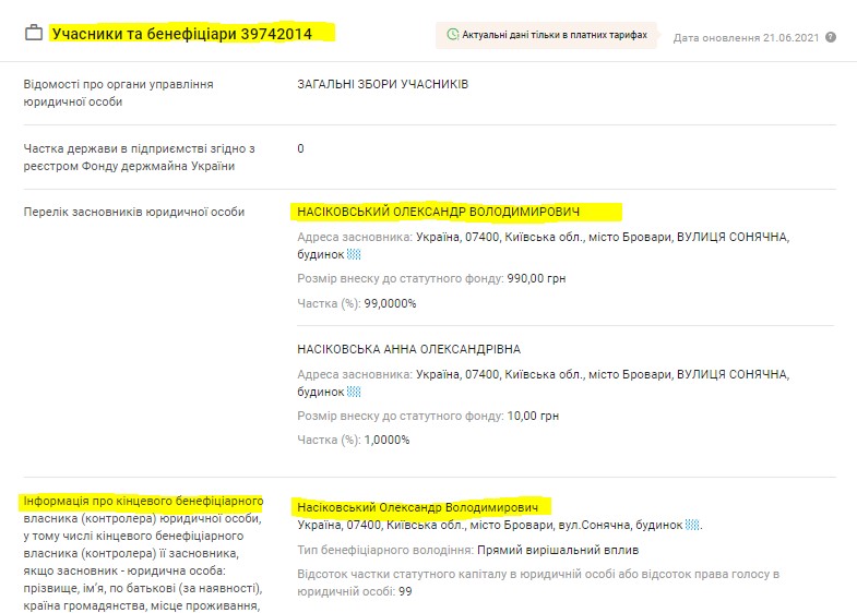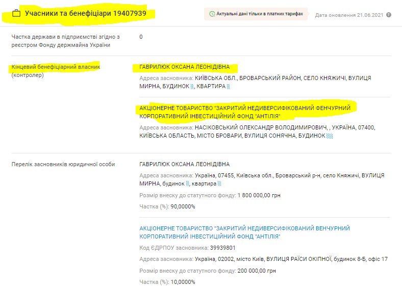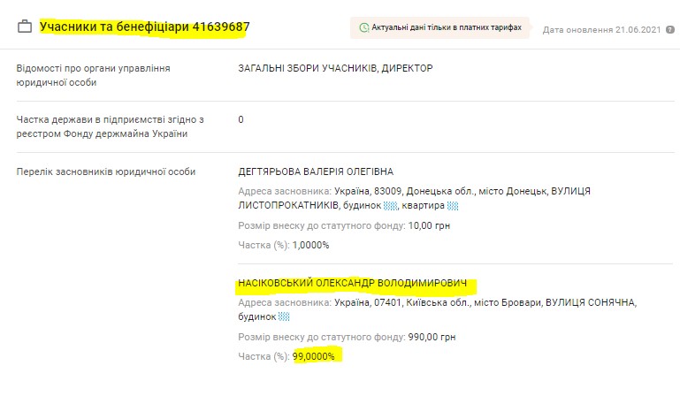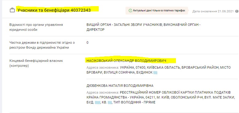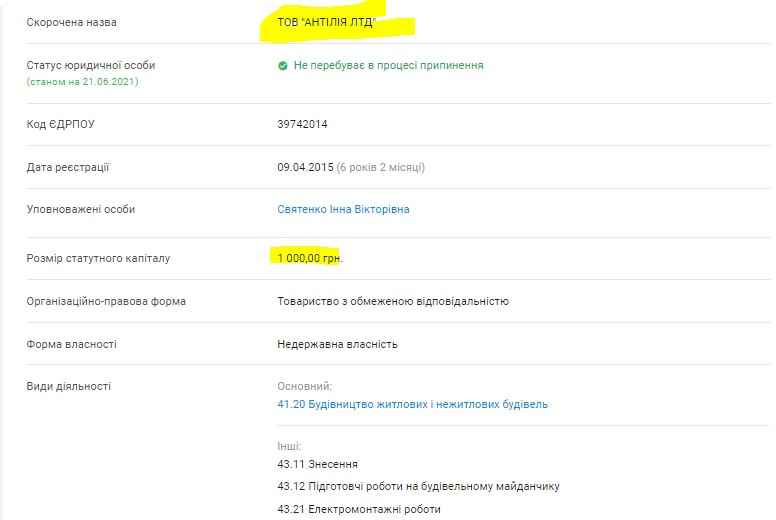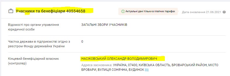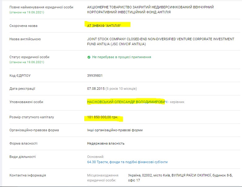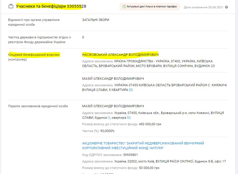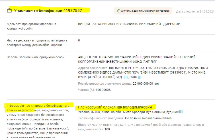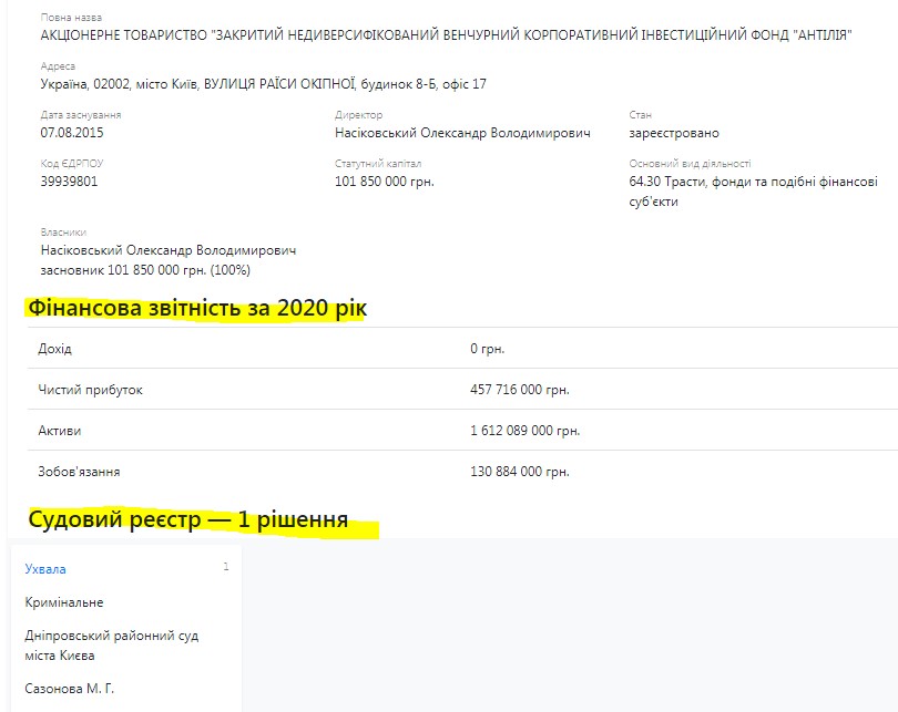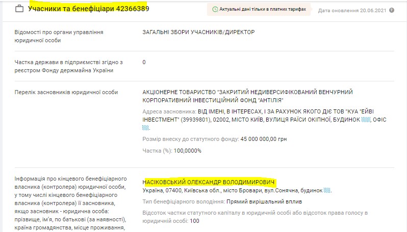 3. ТОВ "АНТІЛІЯ ЛТД" – компания со статусным фондом лишь в тысячу гривен, но и здесь есть бенефициар и это… Александр Насиковский.