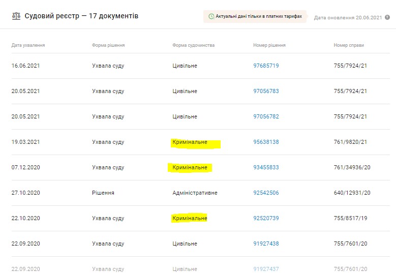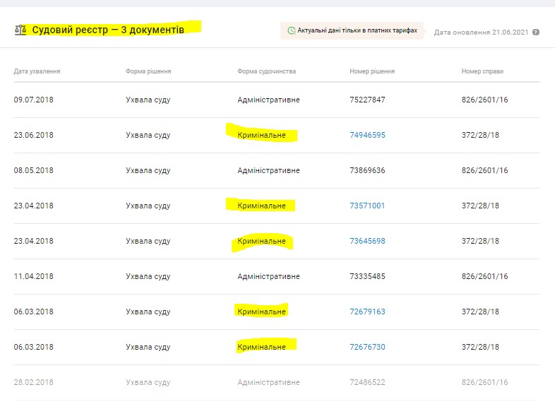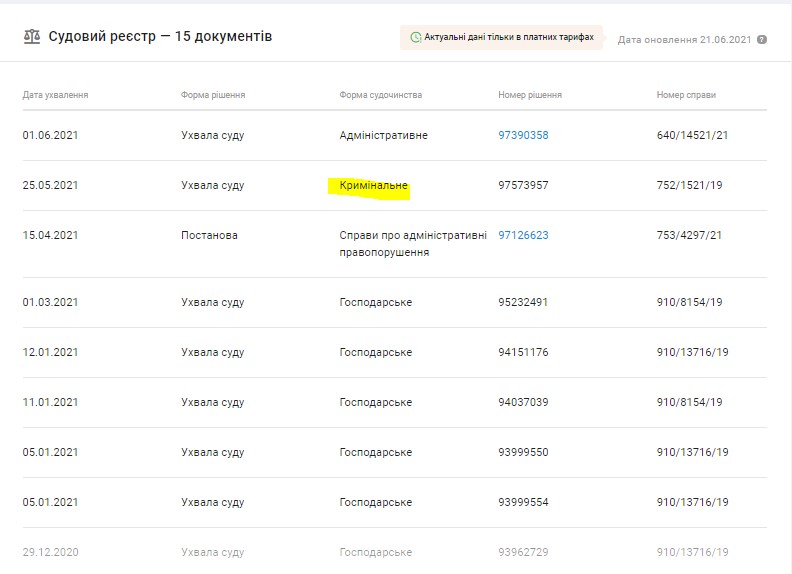 Также компания проходит по шести судебным документам, в том числе и криминальным.