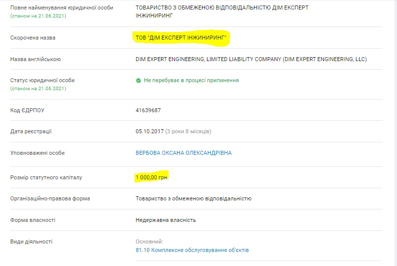 4. ТОВ "ДІМ ЕКСПЕРТ ІНЖИНИРИНГ" – еще одна фирма со стартовым капиталом в 1000 грн. Кто главный бенефициар – вы поняли… И снова четыре криминалки на счету…