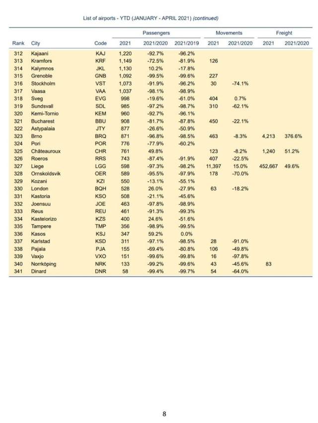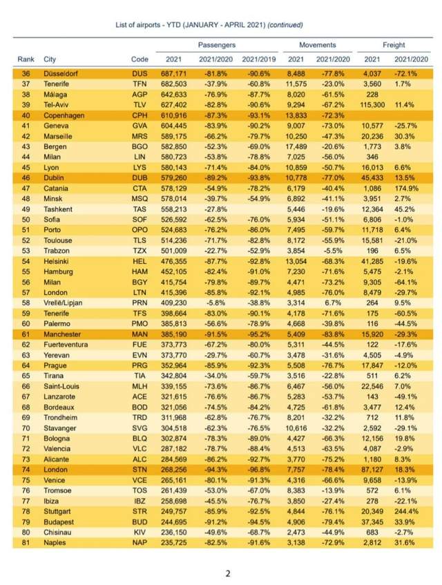 Международный Совет Аэропортов Европы (АСI Europe) опубликовала отчет, в который вошел 341 самый большой аэропорт Европы по количеству пассажиров.