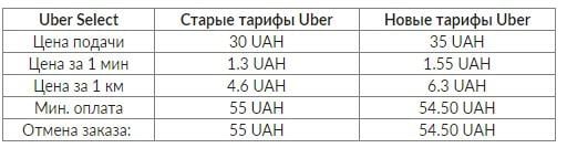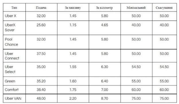 Повністю дізнатися нові тарифи Убер можна в цій таблиці: