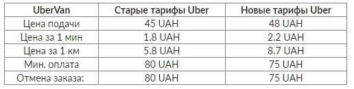 Разом з листом водіям, які співпрацюють з Uber, була вислана таблиця з новими розцінками, з яких буде формуватися вартість поїздки.