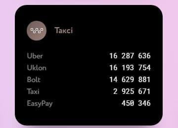 Згідно дашборду Monobank, Uber є одним з двох найпопулярніших перевізників в Україні, разом з Uklon. Трійку сервісів, яким найчастіше платять власники даних карт, замикає таксі Bolt.