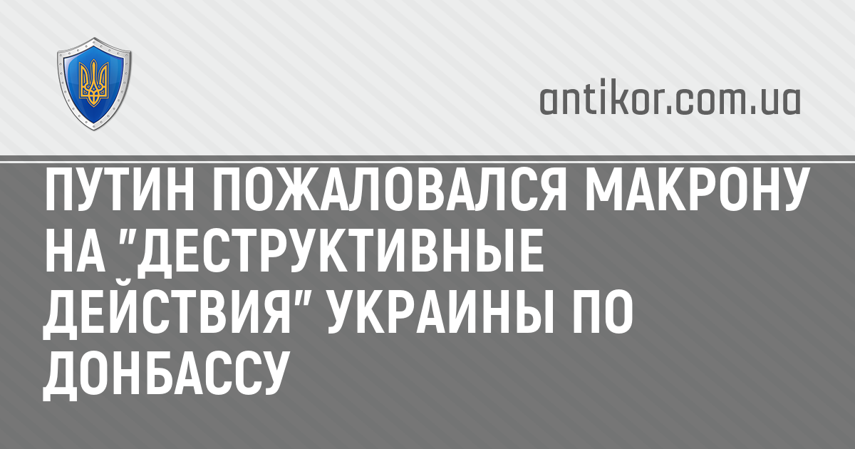 Президент России Владимир Путин во время телефонного разговора с лидером Франции Эммануэлем Макроном пожаловался на Украину. По его словам, Киев "деструктивно действует" в вопросе урегулирования конфликта на Донбассе.