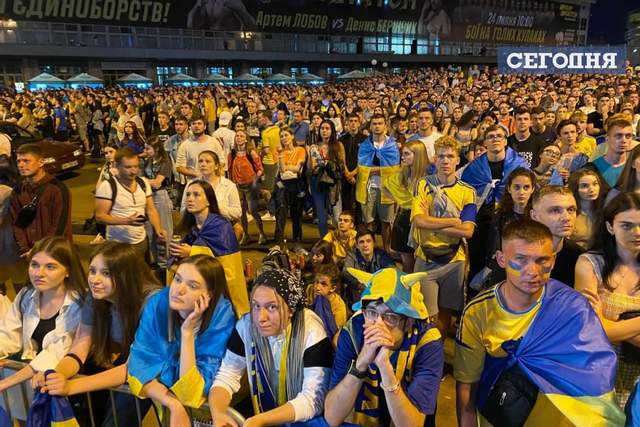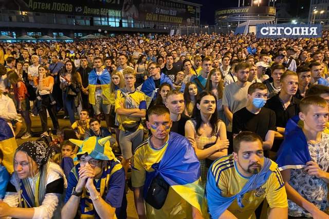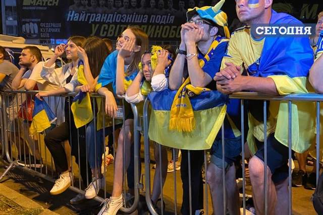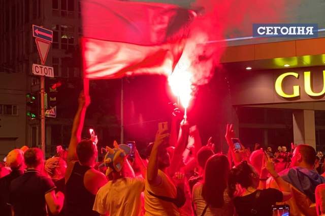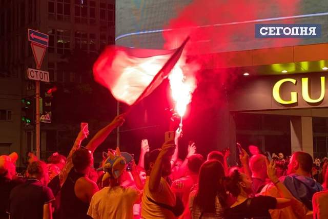 А после объявления окончательного счета, они скандировали "Украина". К слову, последние минуты матча Украина – Англия болельщики встретили огнем. В фан-зоне они подожгли пиротехнику.