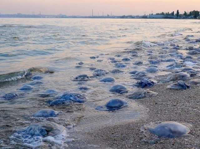 Пляжи Бердянска после мощного шторма засыпало медузами