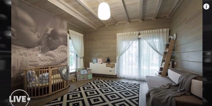 На кухне актрисы высокие потолки и огромная люстра в виде ветки дерева. На втором этаже расположены две детские комнаты – для двойняшек Кати и Вани, а также комната старшей дочери Кравец – Маши.