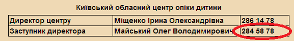 Мало того, один из контактных телефонных номеров благотворительной организации совпадает с телефоном Киевского областного центра опеки ребенка, являющегося структурным подразделением Службы по делам детей. Центр расположен в одном здании с Киевской обладминистрацией.