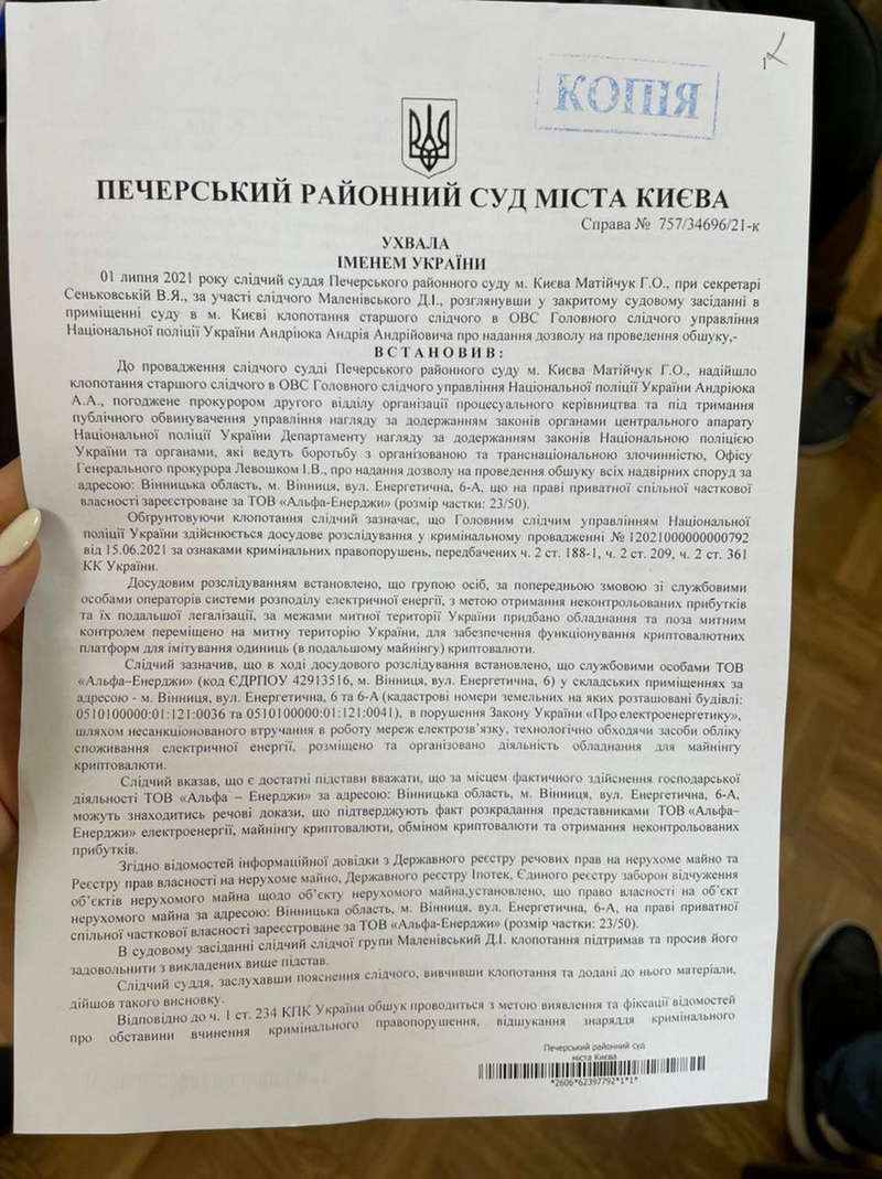 Теги: БізнесНКРЕКПТОВ ММІ ІнжинірінгелектроенергіяОАЕВінницяобленергобіткоінмайнінгСБУВінниця