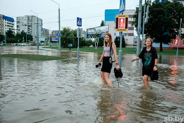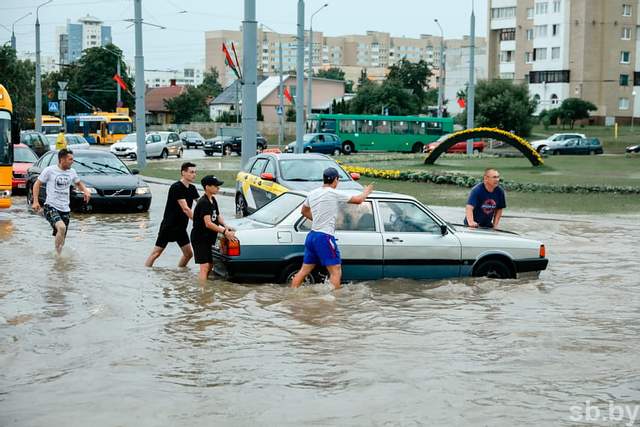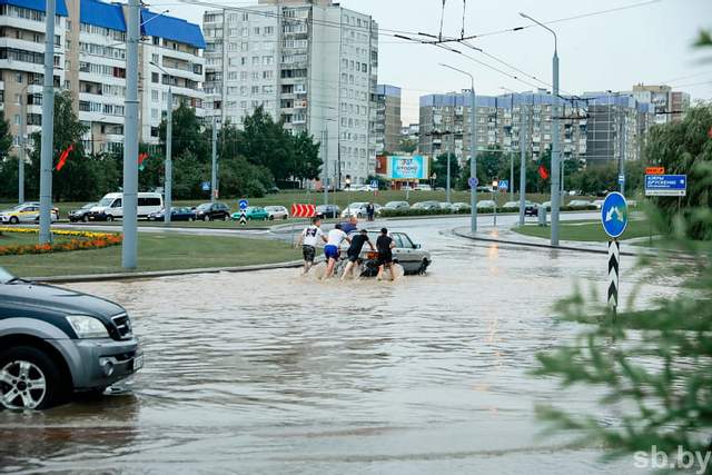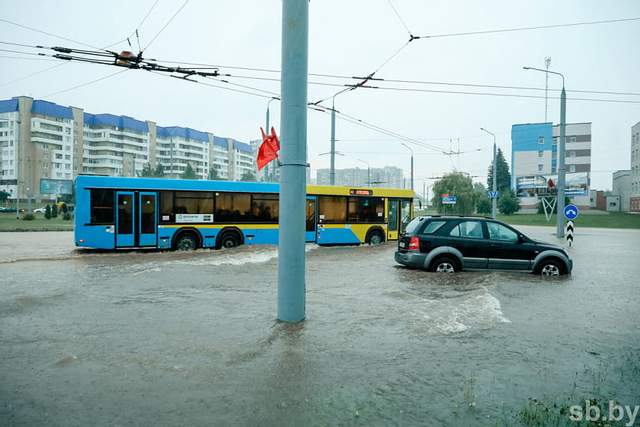 В Гродно с 17:20 до 20:30 выпало 50,1 миллиметра дождя при месячной норме 78 миллиметров – ливень затопил дороги. Работники Министерства чрезвычайных ситуаций до сих пор пытаются откачать воду и убрать поваленные деревья.