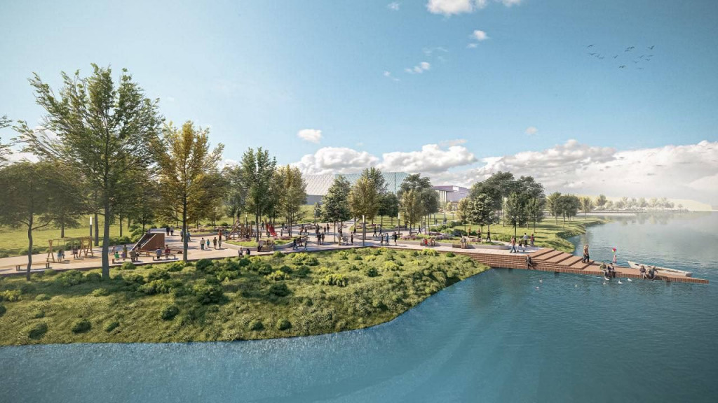 «На северном заболоченном берегу озера, прилегающем к проспекту Бажана, ООО «Мрия-Инвест» планирует создать целый комплекс, который будет включать в себя: рекреационную зону со всей необходимой инфраструктурой, зеленые островки природы, освещенную променаду с велодорожками, оборудованные места для спортивной рыбалки, современные спортивные площадки, реабилитационный центр для ветеранов АТО, паркинг, культурно-развлекательный центр с кинотеатром, аквапарком, ресторанами и магазинами. Это бы полностью удовлетворило потребности жителей жилмассива, а в дополнение создало бы 7-10 тысяч рабочих мест».