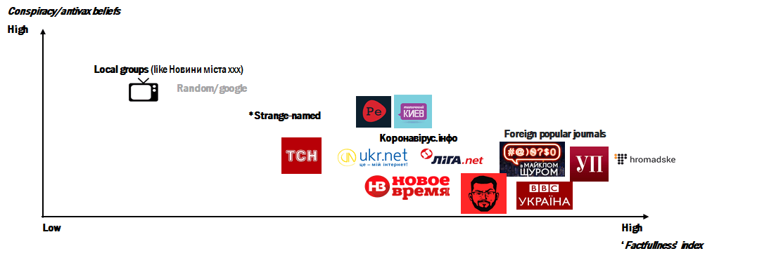 * ‘bagriova news’, ‘хріновини’,’Баба і кіт’, ‘Медуза’, ‘Perepichka news’ , ‘Ищу Киев’ etc. Враховані лише джерела новин згадані понад 2-3 рази