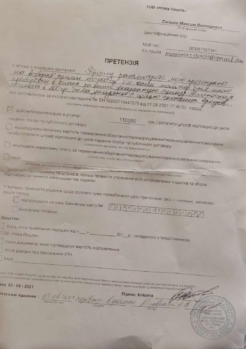 Новая почта выплатит 200 грн за утраченную посылку стоимостью 4000 долларов