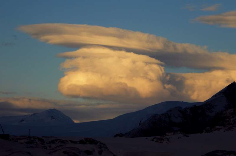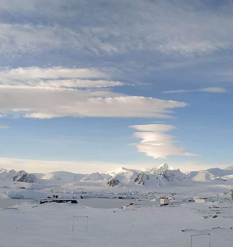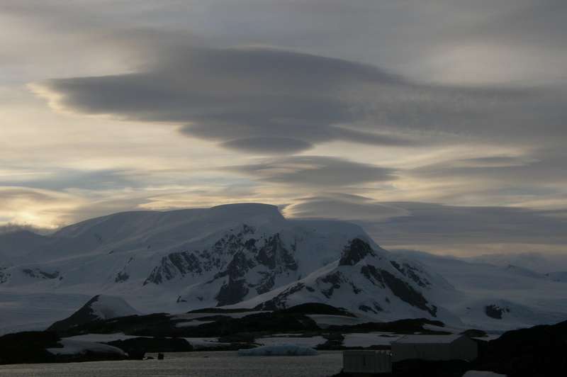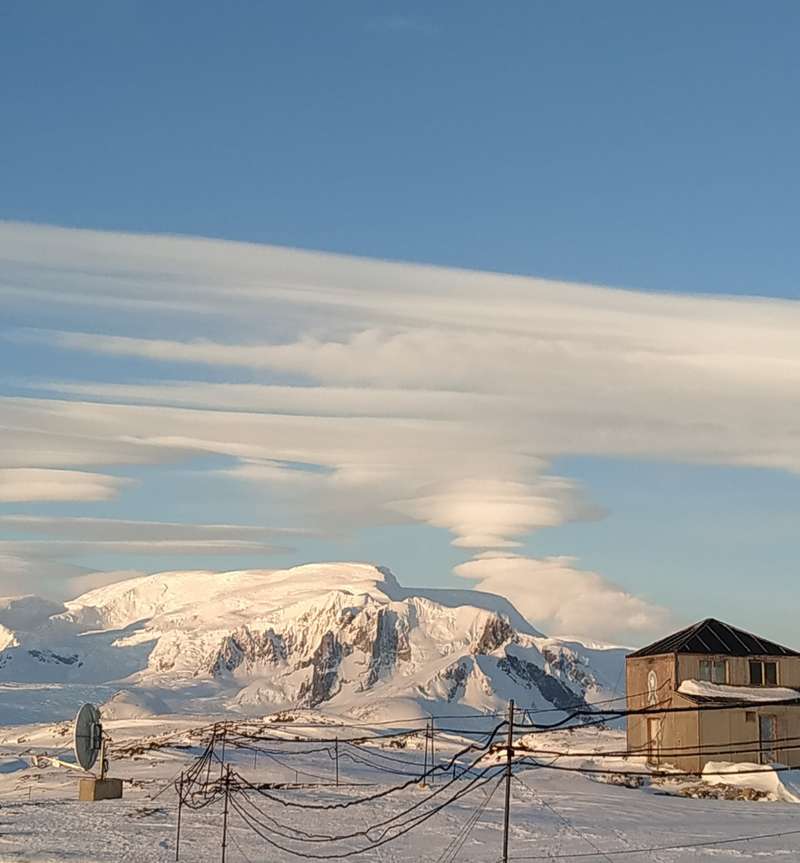 Украинские полярники на станции "Академик Вернадский" заметили редкое погодное явление: большое количество чечевицеобразных облаков.