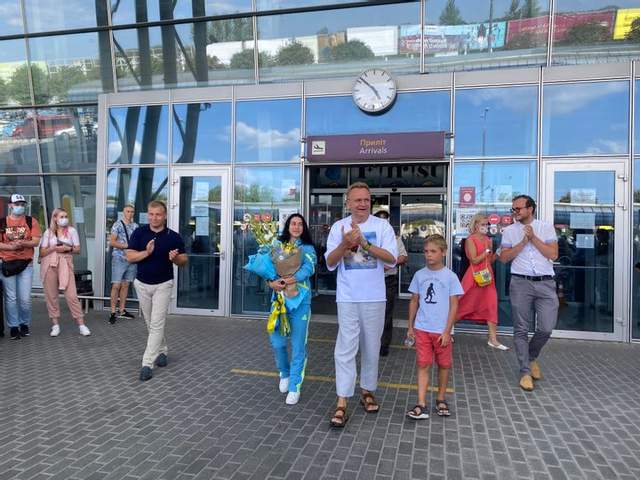 Елену Старикову во Львовском аэропорту имени Даниила Галицкого встречали родные, коллеги и друзья. Встретить чемпионку пришел и мэр Андрей Садовый вместе с семьей.
